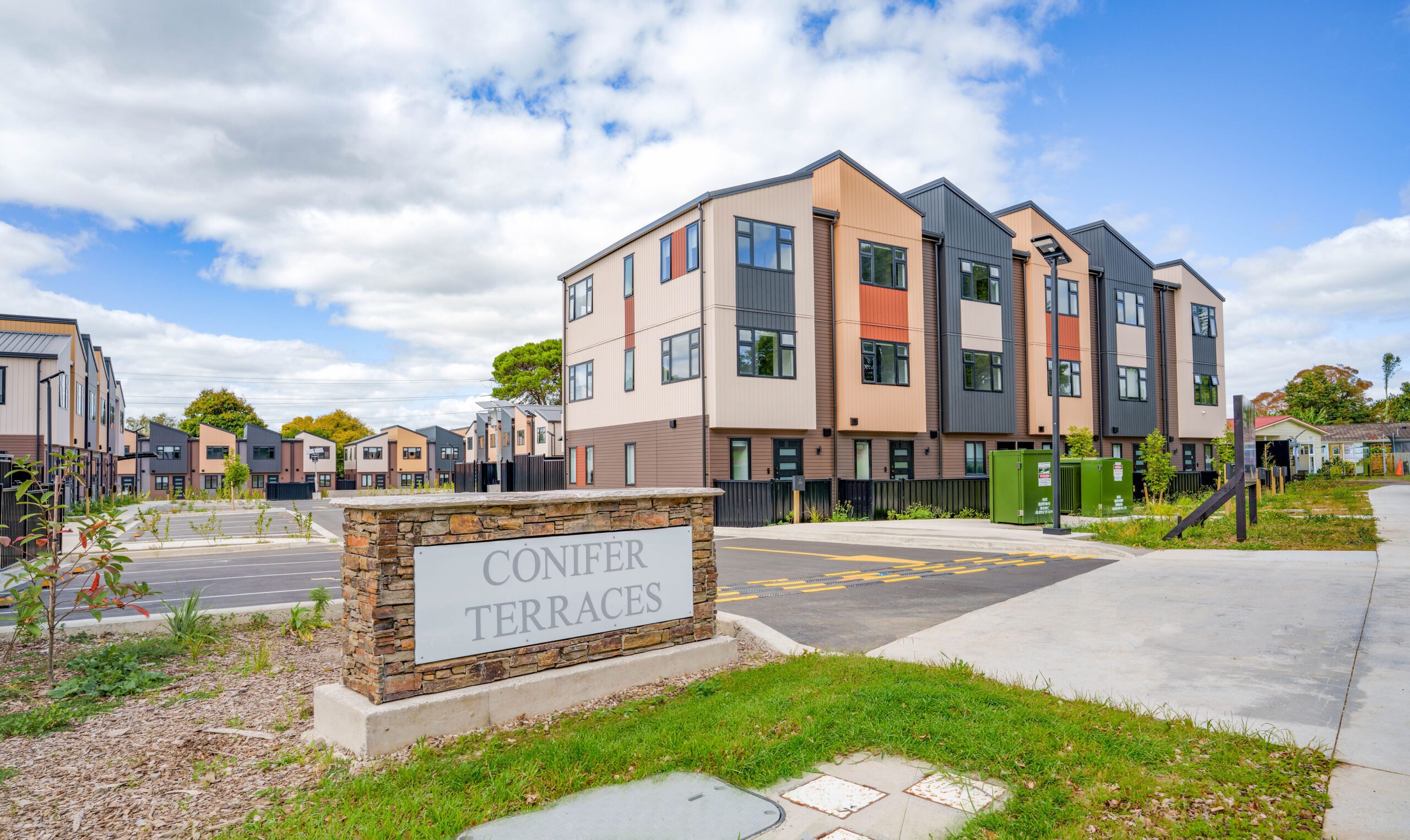 A completed residential development in Conifer Grove, Takanini, South Auckland.
